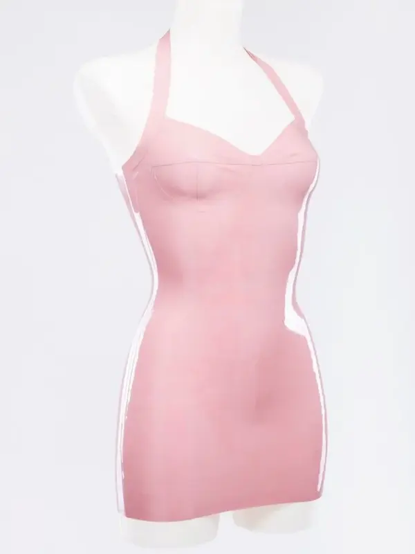 Baby Pink Latex Mini Dress with Molded Cups