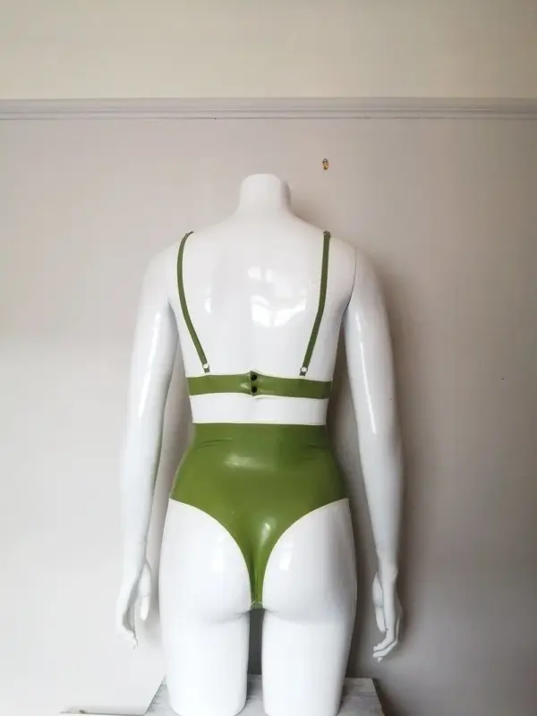 • -44% Natural Green Latex Triangle Bra and High-Waist Thong Set – Two Piece Custom Made