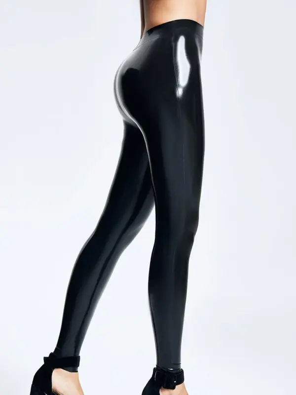 High-Shine Black Latex Leggings – Seamless Fit, 0.4mm Thickness